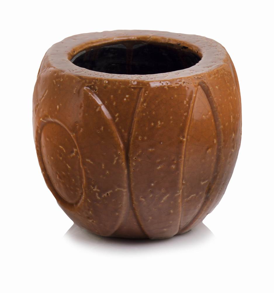 Ceramiczna osłonka doniczkowa charakteryzująca się pięknym, wysmakowanym wzornictwem. Subtelne, kuliste, harmonijnie ułożone wzory płynnie współgrają z dość masywną konstrukcją doniczki, tworząc intrygujący, niespotykany projekt. Doniczka będzie stanowiła mocny, focusowy akcent w każdym wnętrzu, wnosząc swój indywidualny, wysublimowany charakter. Piękna, ciepła kolorystyka, nasycony pomarańcz wnosi w otoczenie wiele pozytywnej, słonecznej energii. Żywe barwy, subtelnie i z lekkością się przenikają. Naturalnie i harmonijnie komponuje się z zielenią, dodając wnętrzu meksykańskiego klimatu, tworząc razem urzekającą całość. Doniczka z licznymi, pęknięciami szkliwa i nierównościami, ten celowy zabieg nadaje ceramice uroku rękodzieła i autentyczności.