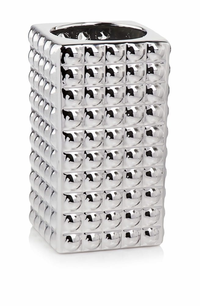 Ten wazon z kolekcji Moon to ceramiczny przedmiot o kwadratowej podstawie i lustrzano-srebrnym wykończeniu. Dzięki procesowi galwanizacji jego powierzchnia odbija otoczenie jak prawdziwe lustro, co sprawia, że stanowi on wyjątkowy detal dla osób ceniących sobie nowoczesną estetykę w stylu glamour.